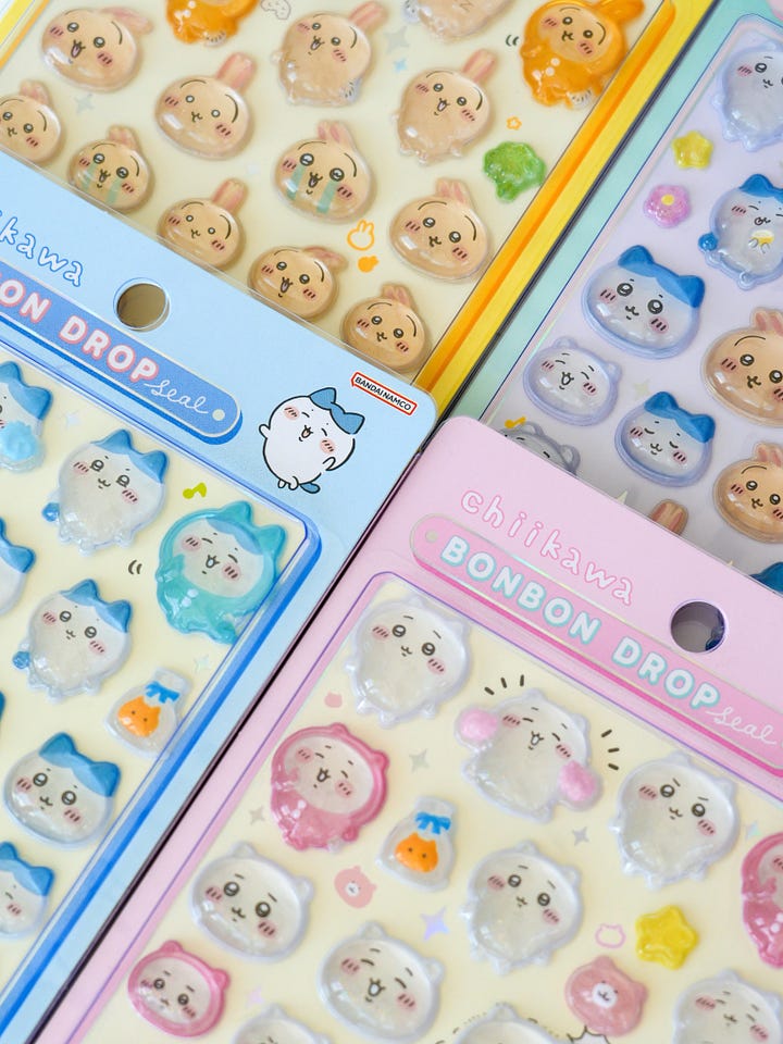 サンスター文具のボンボンドロップシールが特に人気で、ちいかわ、たまごっち、サンリオと様々なコラボ商品が発売されています。